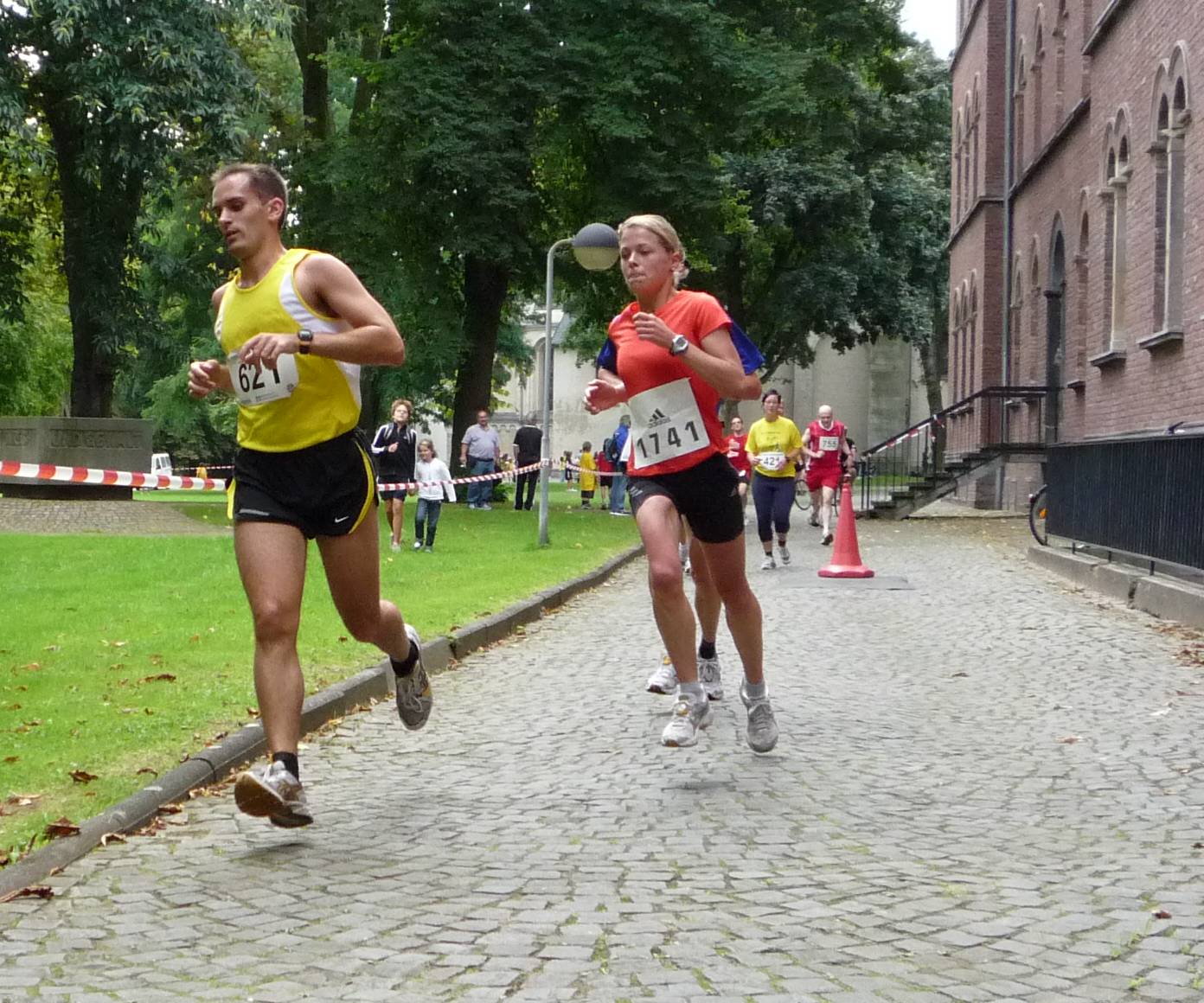Der Kurs, wegen seiner profilierten und eckigen Streckenführung eher zu den schwierigeren zu zählen, führte insgesamt 4 Mal um die Abtei. Das ist natürlich ganz im Sinne der Zuschauer, die jede(n) Läufer(in) so mehrfach zu sehen bekommen. Oliver Kempis legte von Anfang an einen Höllentempo vor und hatte schon nach der ersten Runde einen gehörigen Vorsprung, den er bis zur Ziellinie stetig ausbaute. Er hätte es auch deutlich ruhiger angehen können, wollte den Zuschauern aber wohl das erhoffte Spektakel bieten.