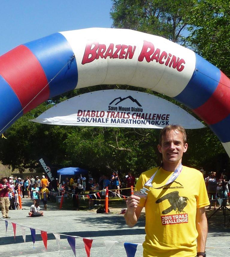 Erst eine Woche zuvor wurde Martin Koller von den Rhein-Berg Runners Deutscher M45 – Halbmarathonmeister in Husum. Dass Mo Farah und Galen Rupp nicht überall sein können, nutzte er unmittelbar danach bei einer Dienstreise in die USA zu einem Start über 10 km beim „Diablo Trail Challenge“. Extrem auf und ab, durch Bachläufe und über Single-Trails führte die interessante Strecke durch einen schönen State Park. Es wurde aber nichts aus dem angedachten Wochenend-Genusslauf, da ein anderer Starter schon vor dem Start seine vermeintliche Sieger-Show abzog. Als er dann auch unterwegs glaubte, seinen Sieg zu sichern, indem er ihm immer wieder „vor den Füßen rumlief“, half nur einen Gang hoch zu schalten, um das Rennen am Ende vor ihm zu gewinnen.