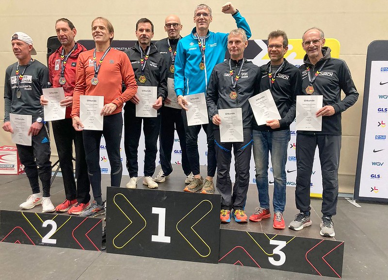 In der Jagd zur Jahresbestzeit musste Top-Masterathlet Johannes Ritter unfreiwillig drei Tage von der DM die Pole Position in der Deutschen M60-Bestenliste von seinem Edelkonkurrenten Hardy Flum zurückholen. Dies gelang in 17:03 min über 5.000m auch mit großem Einsatz. Der Preis jedoch war, dass ihm eben dieser Konkurrent mit frischen Beinen am Sonntag vom Start weg davonlief. Auch wenn der Abstand nicht größer wurde, konnte Johannes mit seiner defensiveren Taktik den neuen Titelträger Hardy Flum (36:36) von der LG Hohenfels nicht mehr einholen. Doch sicherte sich Johannes Ritter mit 36:53 min. vor dem Halbmarathon-Vizemeister Robert Jäkel (37:16) die Silbermedaille. Das erfolgsverwöhnte Masterteam blieb als Vierter der Mannschaftswertung hinter den Milers Colonia, der TSG Heidelberg und der SCC Hanau-Rodenbach knapp geschlagen diesmal ohne Medaille.